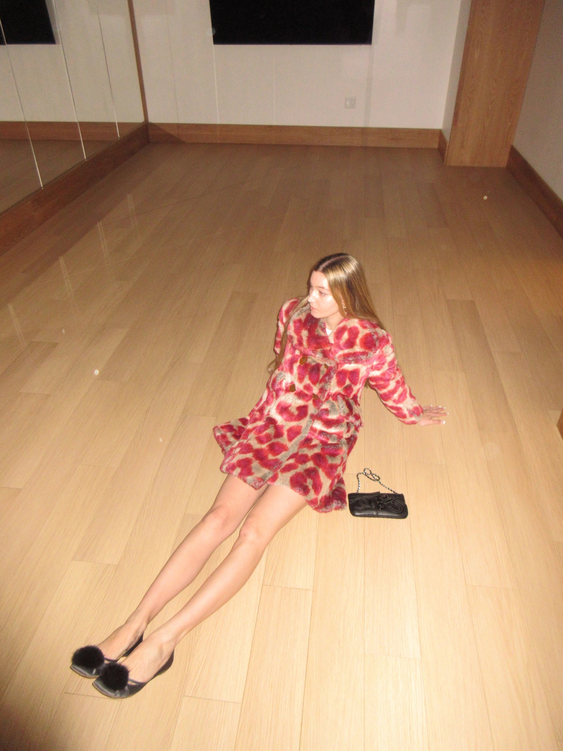 The “Always on Camera” collection explored the tension between authenticity and spectacle, using exaggerated silhouettes, bold prints, and deliberately theatrical styling. Within this context, the pink leopard coat functioned as both armor and costume: a statement of confidence that demanded attention while simultaneously mocking traditional notions of refinement. Crafted in faux fur, the piece reflects Westwood’s long-standing rejection of conventional luxury materials in favor of ethical alternatives, without sacrificing visual impact or sensuality.